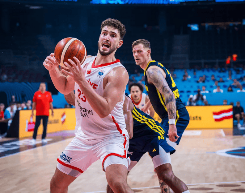 本场比赛,土耳其队有些慢热。首节,他们就被瑞典队抢得先机。进入次节,土耳其的进攻效率依然不高,半场,他们总共只得到37分,并且大比分上继续落后瑞典。但来到第三节,土耳其掀起13-2的攻击波迅速将比分反超。这一节,他们不仅进攻回暖,防守端也限制对手只得到了13分。末节,土耳其继续穷追猛打,申京连续贡献巨星球,他的自投自抢和盖帽后的反击暴扣最终帮助土耳其锁定胜局。